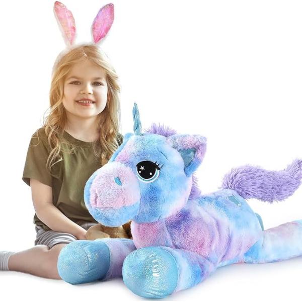MorisMos 32in Giant Rainbow Blue Unicorn Stuffed Animal Toys Cute Soft Plush for Kids Birthday Decorations Party Gifts Filled PP Images |